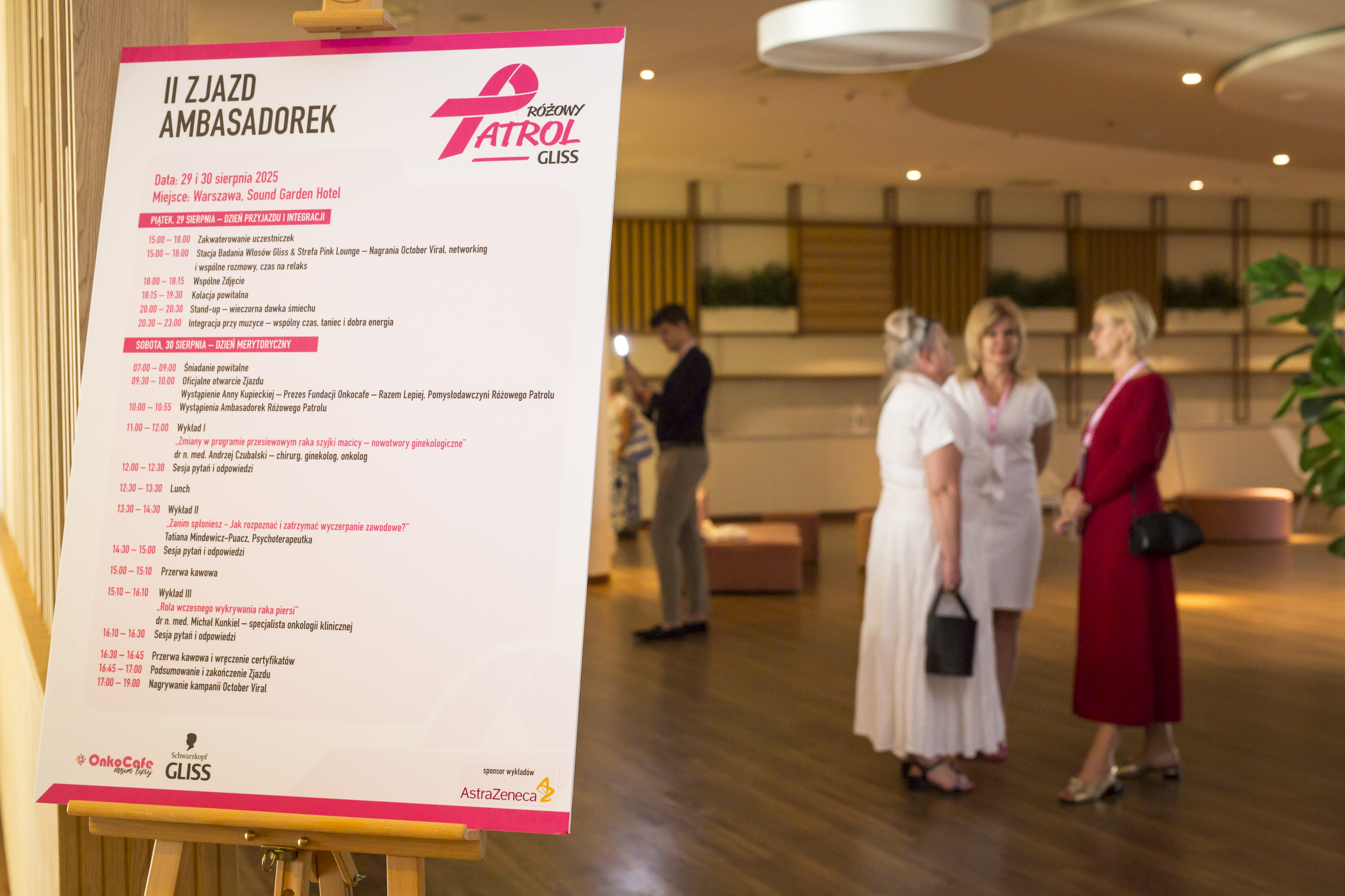 „Zjazd Ambasadorek Różowego Patrolu Gliss to nie tylko przestrzeń wymiany doświadczeń, ale także platforma edukacjna, na której omawiamy najnowsze doniesienia z zakresu profilaktyki i diagnostyki onkologicznej. Chcemy, aby każda Ambasadorka wracała do swojej społeczności z aktualną wiedzą i konkretnymi narzędziami, które pomagają realnie zwiększać liczbę kobiet wykonujących samobadanie piersi oraz badania. Projekt Różowy Patrol Gliss jest inwestycją w zdrowie kobiet w całej Polsce” – powiedziała Anna Kupiecka, prezes Fundacji OnkoCafe – Razem Lepiej i pomysłodawczyni Różowego Patrolu.